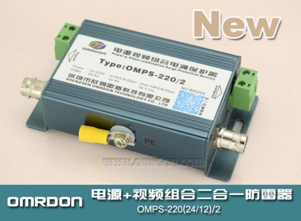歐姆雷盾(OMRDON)CCTV安防監控系統模擬攝像機二合一防雷器(又稱:二合一電涌保護器、二合一浪涌保護器、二合一避雷器)是依據IEC和GB標準設計,適用于不帶云臺控制的模擬攝像機(Analog Camera)的電源和信號線路的雷擊電磁脈沖(LEMP)電涌保護,是一體化多功能電涌保護器。主要于對監控模擬攝像機的電源、視頻線路實施電涌保護,可充分保護最新技術的監控設備。