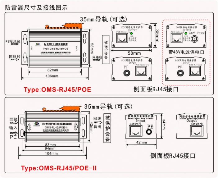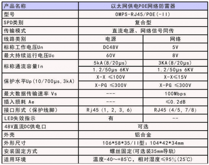 POE網絡防雷器技術參數:POE網絡防雷器安裝指導: