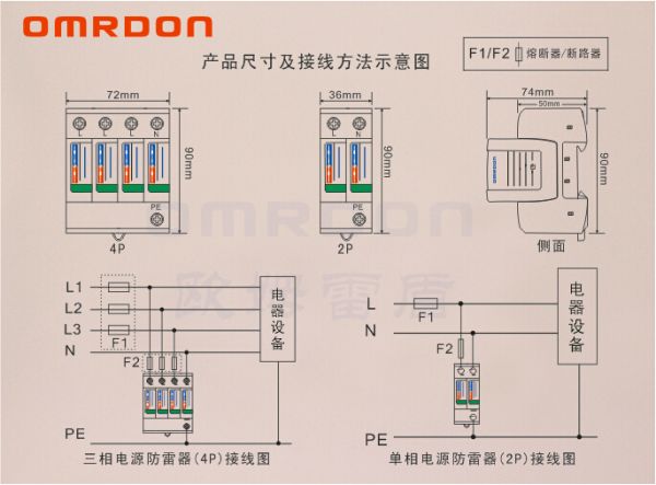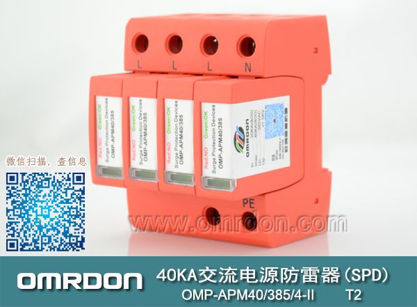 歐姆雷盾(OMRDON)二級電涌保護器(Surge Protection Device,簡稱SPD)(又稱電源防雷器、電源避雷器、浪涌保護器、過壓保護器),適用于交流380V(50Hz/60Hz)及以下的TN-S、TN-C-S、TT、IT等供電系統因雷擊而產生的雷擊電磁脈沖(LEMP)保護,用于雷擊區域的LPZ1區與LPZ2區交界處,其設計依據符合GB18802.1,IEC61643-1技術標準。