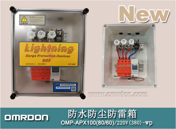 歐姆雷盾(OMRDON)60KA二級單相/三相防水防塵電源防雷箱(Surge Protection Device BOX)適用于交流50Hz/60Hz,380V及以下的TN-S、TN-C-S、TT、IT等供電系統的防雷保護,用于LPZO或LPZ1區與LPZ2區交界處,其設計依據符合GB18802.1,IEC61643-1技術標準,防雷模塊內置失效脫離裝置,當電涌保護器因過流過熱擊穿失效時,失效脫離裝置能自動的將其從電網上脫離,同時可視告警指示窗口由綠色(正常)變成紅色(故障),可視告警指示模塊可在有工作電壓情況下更換。并帶有數顯雷擊計數器,可以方便的記錄雷電波沖擊次數。