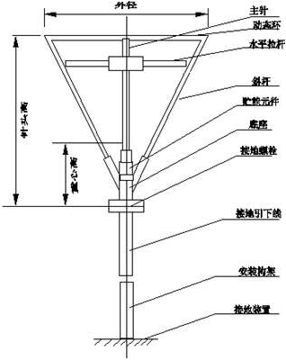 2.在安裝可控放電避雷針的針頭時,要求動態(tài)環(huán)保持水平,主針處在鉛垂方向。自針頭頂部至被保護物頂部的高度大于3m。禁止在結(jié)構(gòu)支柱上懸掛電話線、廣播線、電視天線及電力架空線。