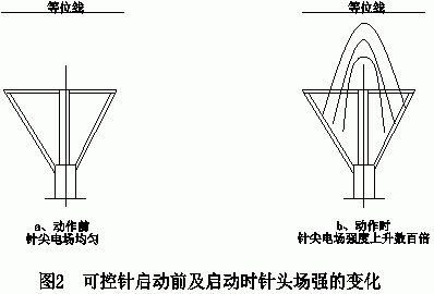 2、當(dāng)需要引發(fā)上行雷閃時,針尖處的電場強度應(yīng)足夠高,以迅速產(chǎn)生放電脈沖。