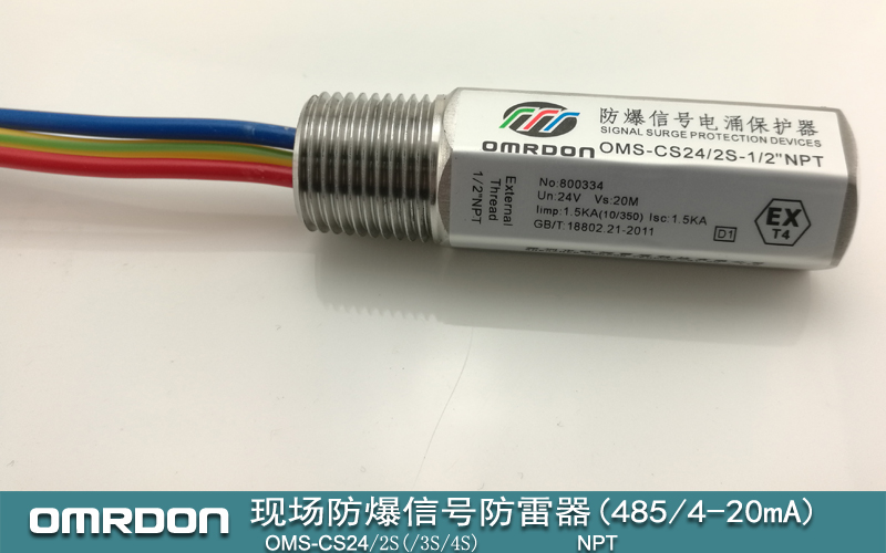 歐姆雷盾(omrdon)OMS-CS24/2S(/3S/4S)-1/2NPT系列防爆信號電涌保護(hù)器(防雷器)用于石油、化工、煤礦等易爆危險區(qū)域中本質(zhì)安全電路和總線系統(tǒng)的電涌保護(hù),如工業(yè)過程控制危險場所(現(xiàn)場)儀表、設(shè)備的粗細(xì)保護(hù)。