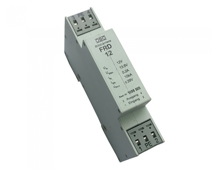 FRD2和FLD2系列保護器是專門用于與地相關的單線系統(對稱的、電壓相關的)。在這里也有一個串聯電阻和串聯電感的選擇,如果允許電阻增大則選FRD2,對于電壓控制的裝置則選FLD2。由于它們被設計了兩級保護電路,因此也適合于安裝到LPZ1→LPZ3。