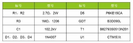 其中GDT置于最前端,提供一級(jí)防護(hù),當(dāng)雷擊、浪涌產(chǎn)生時(shí),GDT瞬間達(dá)到低阻狀態(tài),為瞬時(shí)大電流提供泄放通道,將CAN_H、CAN_L間電壓鉗制在二十幾伏范圍內(nèi)。實(shí)際取值可根據(jù)防護(hù)等級(jí)及器件成本綜合考慮進(jìn)行調(diào)整,R3與R4建議選用PTC,D1~D6建議選用快恢復(fù)二極管。參數(shù)表如下